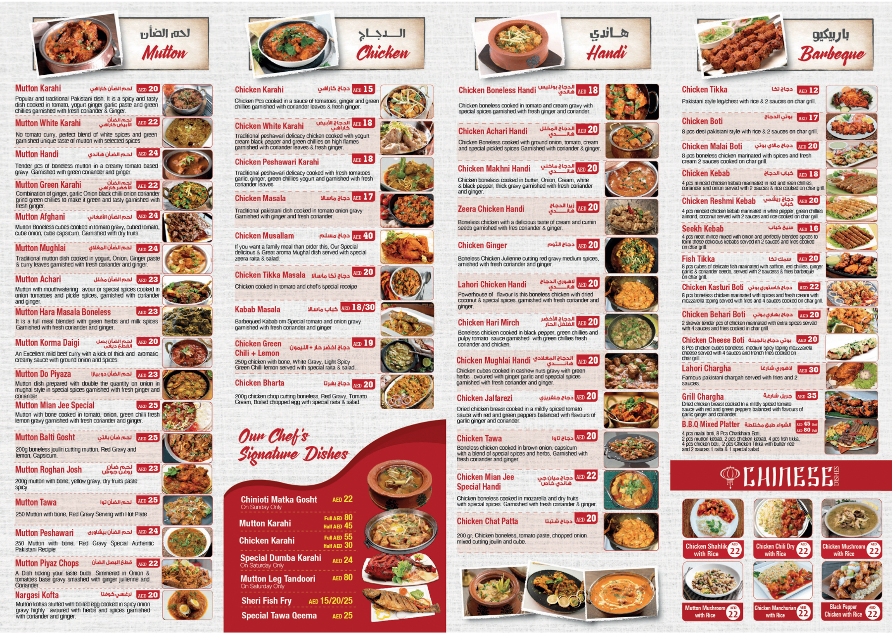 At Mian Jee Family, we take pride in serving two of Pakistan’s most beloved dishes — Chicken Biryani and Chicken Karahi — each prepared with care and authenticity. Our Chicken Biryani features fragrant basmati rice layered with tender, marinated chicken, slow-cooked with a blend of aromatic spices, saffron, and fresh herbs, offering a perfect balance of richness and warmth. Equally irresistible, our Chicken Karahi is cooked fresh to order in a traditional wok-style pan, where juicy chicken pieces are simmered in a rich tomato, ginger, and garlic base, enhanced with freshly ground spices, green chilies, and coriander. Paired with cooling raita, crisp salad, or hot tandoori naan, these dishes bring the true taste of Pakistan to the heart of Dubai.